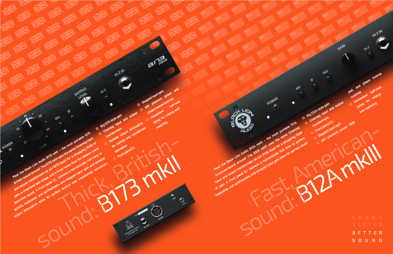Meet the Black Lion Audio B173 mkII — the most portable 1073 British-sound around! The B173 mkII uses the same Cinemag input and output transformers as Black Lion Audio’s B173 Quad for a whopping 70dB of gain, a revamped gain stage, and a lower noise floor for cleaner, lower distortion sound. A front panel D.I. delivers a harmonically rich tone to guitars, keyboards, and synthesizers, and stepped input gain and variable output attenuation allow for perfect control over transformer saturation.