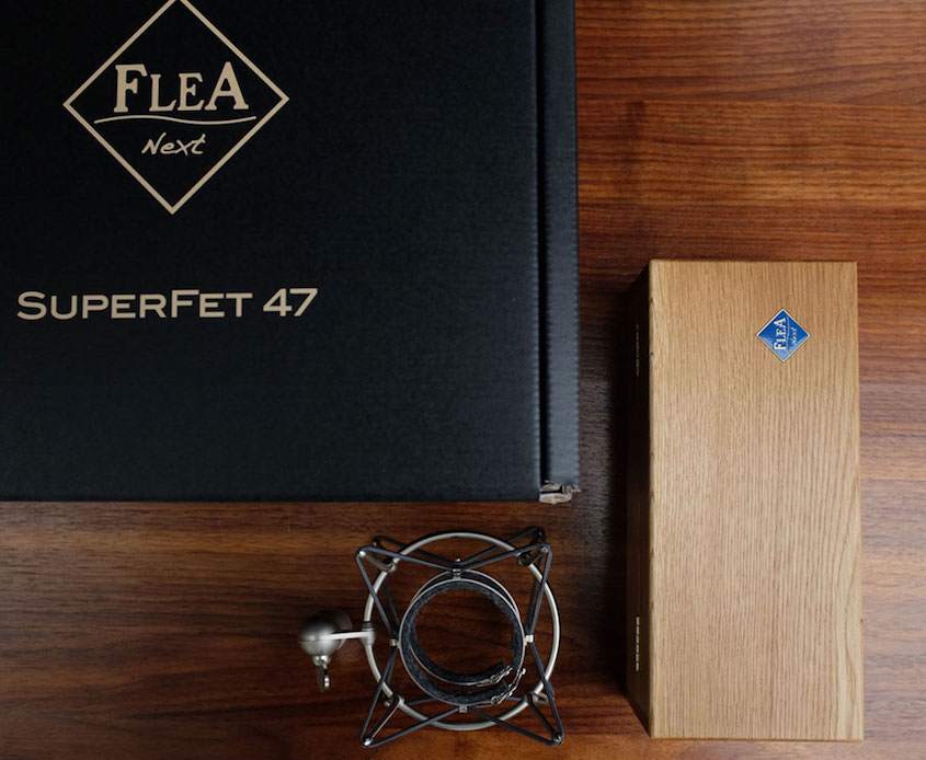 The FLEA47 SUPERFET comes as a complete package, including a handmade oak wooden box for the microphone, a heavy-duty shockmount, and additional essential accessories for optimal use.