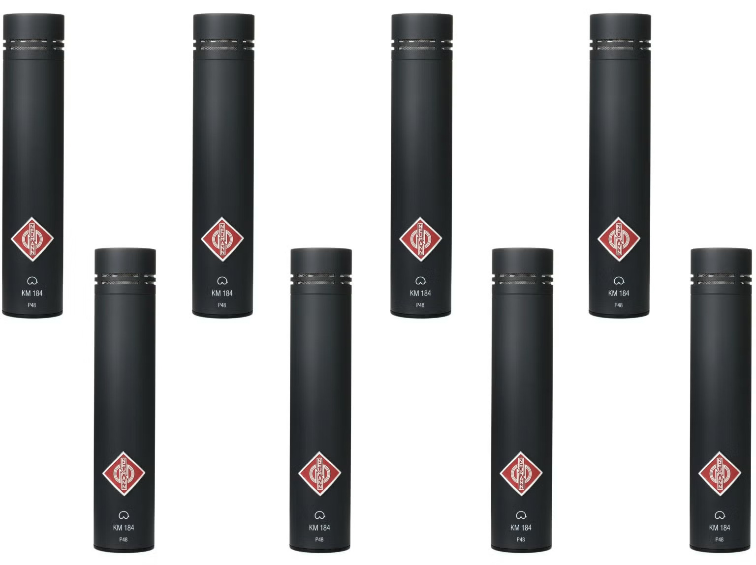 The KM 184 is a universal microphone for studio and stage applications. Its transparent sound makes the KM 184 a superb microphone for acoustic instruments, such as piano, percussion, drums, acoustic guitar, upright bass, violin, cello, woodwinds, and brass. The KM 184 can be used for soloists as well as ensembles. Thanks to its superior off-axis behavior, the KM 184 is an excellent microphone for stereo and surround recording with perfect imaging. Although the KM 184 is not specially optimized for the human voice, it is often used for classical vocals and whenever sonic authenticity is paramount. Due to its small size, the KM 184 is visually unobtrusive and well suited to TV and radio applications.