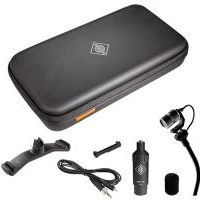 Complete set for using the Miniature Clip Mic system on the strings of a double bass behind the bridge. Contains: KK 14 capsule, SH 150 gooseneck, KC 1 cable brace, AC 31 cable, MCM 100 output stage, WS 110 wind shield, MC 3 clip. Delivered in a handy soft case.