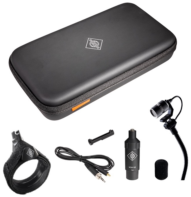 Complete set for using the Miniature Clip Mic system on an oboe, clarinet, flute, recorder, harp or bassoon. Contains: KK 14 capsule, SH 150 gooseneck, KC 1 cable brace, AC 31 cable, MCM 100 output stage, WS 110 wind shield, MC 5 clip. Delivered in a handy soft case.