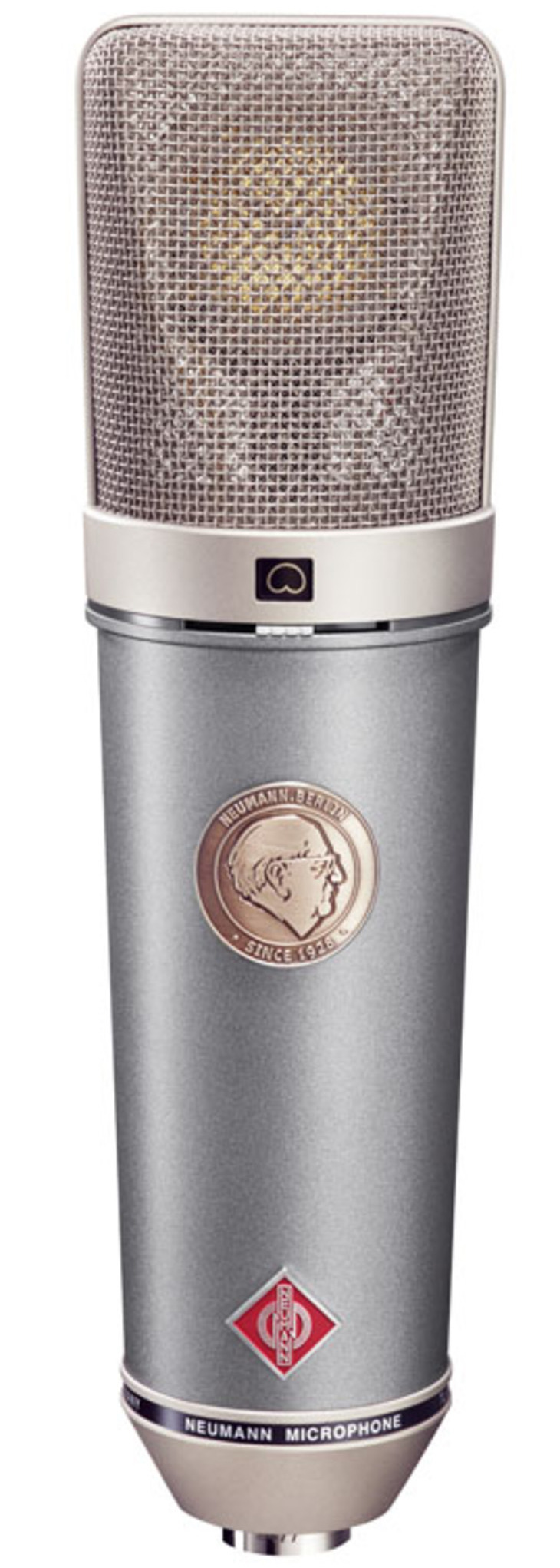 Visually, too, the TLM 67 has a retro touch with a unique dual color scheme, combining a capsule head in classic satin nickel with a stylish pearl-gray body. Released in 2008, the TLM 67’s front is graced by a metal emblem of Neumann’s founder, Georg Neumann, commemorating the company’s 80th anniversary.