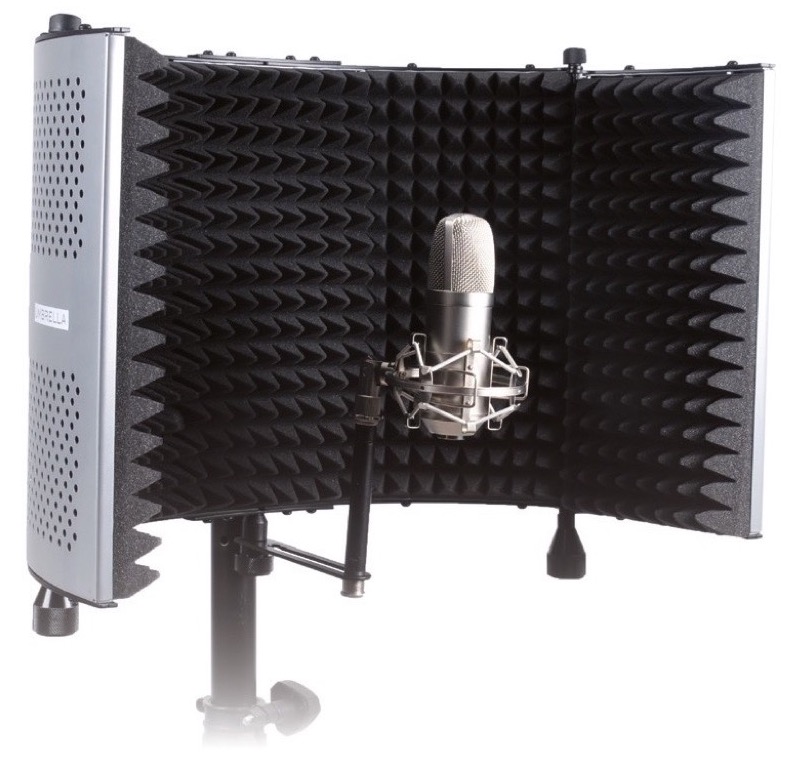 Mobiel reflectiescherm voor het absorberen van omgevingsgeluid in thuisstudio's en onderweg