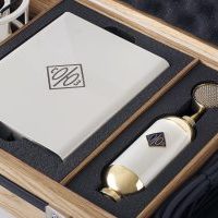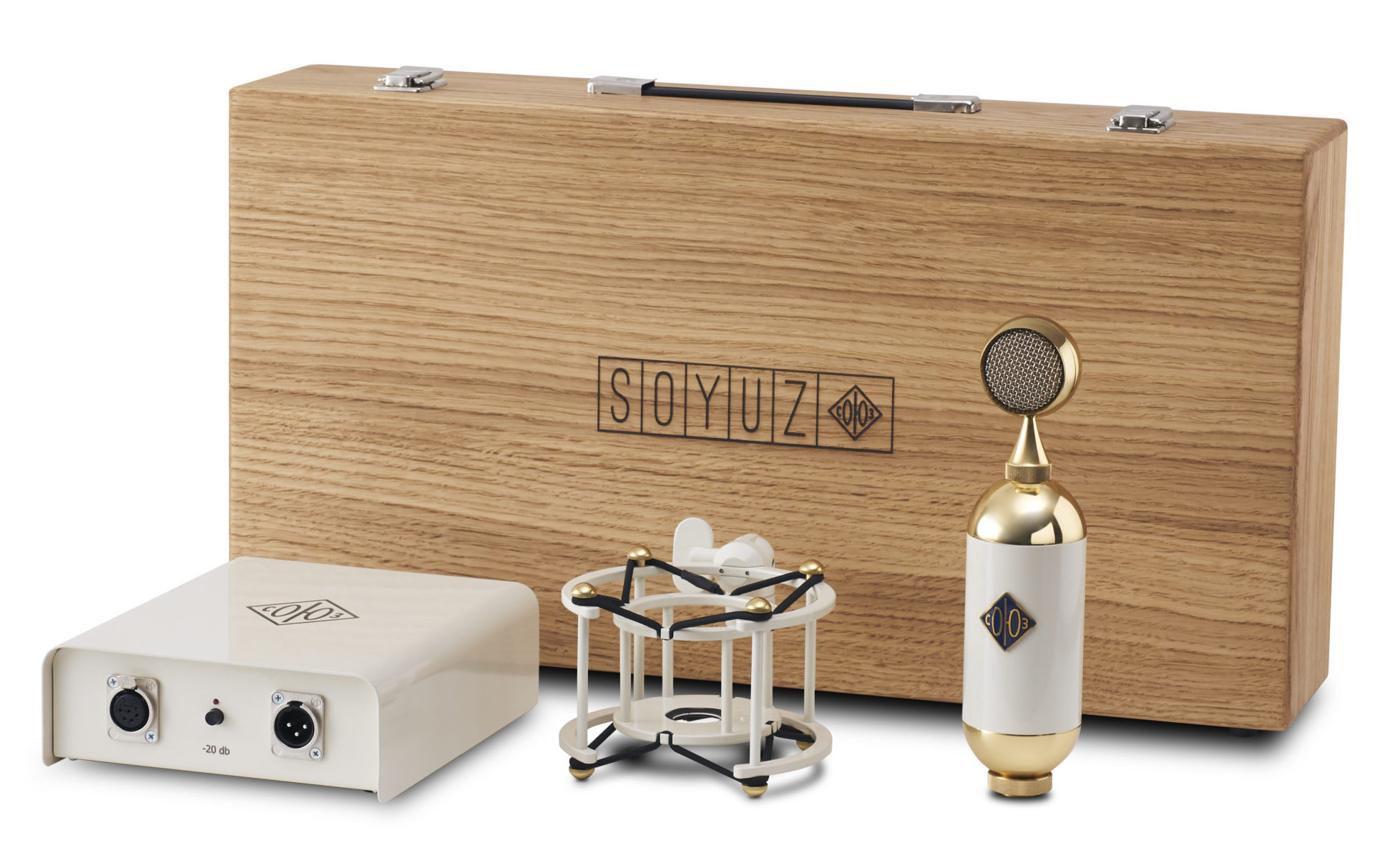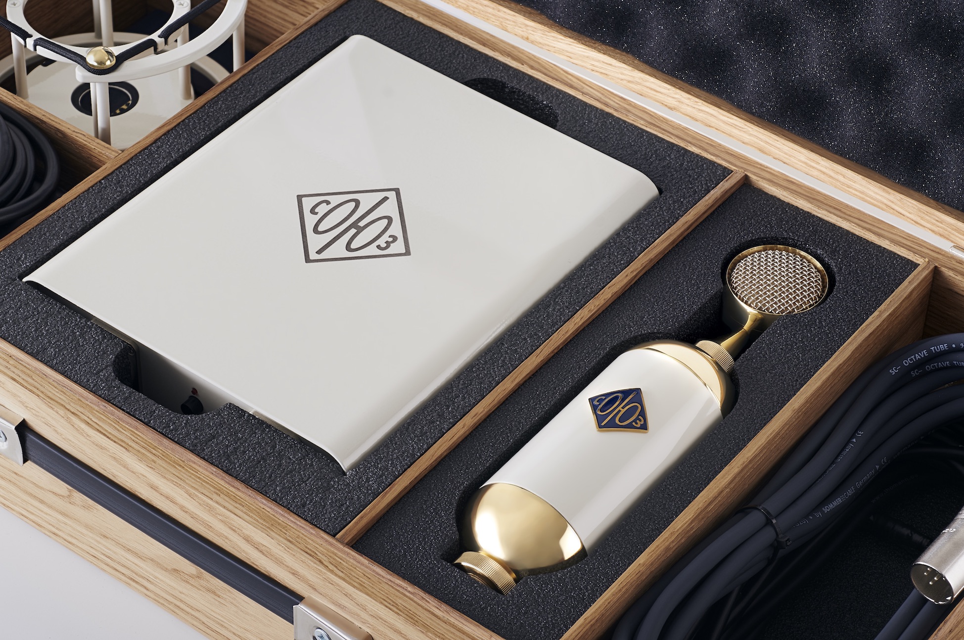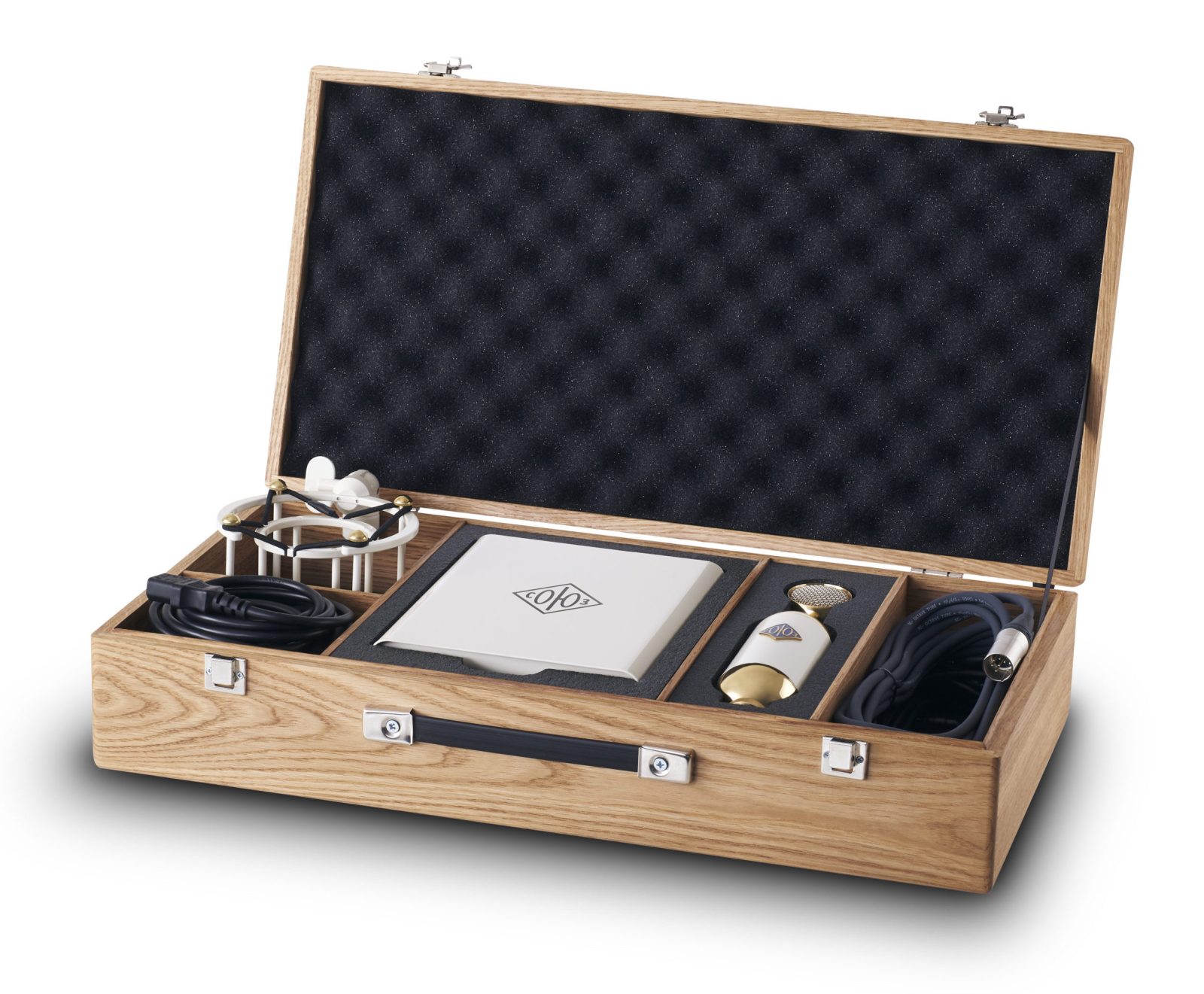 Grootmembraan buizen condensatormicrofoon met verwisselbare cardioïde capsule, externe voeding en shockmount