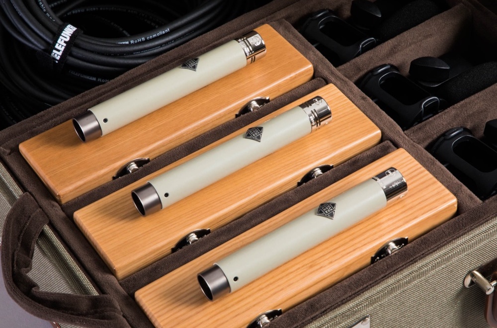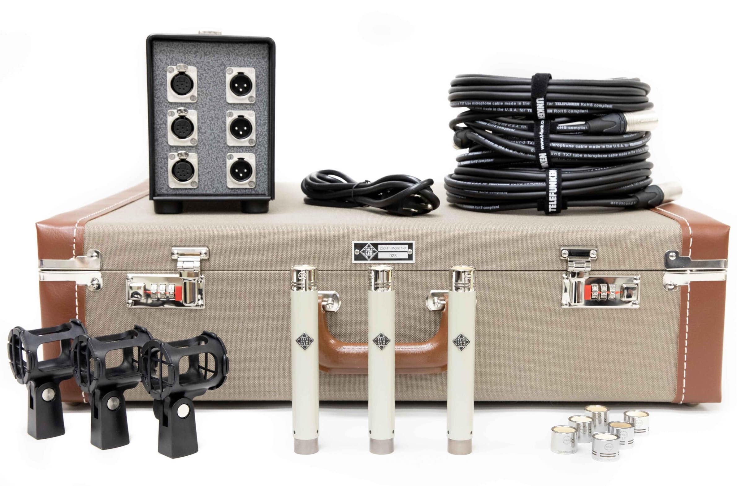 A matched set of three ELA M 260 tube microphones with interchangeable TK60 Cardioid, TK61 Omnidirectional and TK62 Hypercardioid capsules, along with a set of three 40mm diffuse field spheres