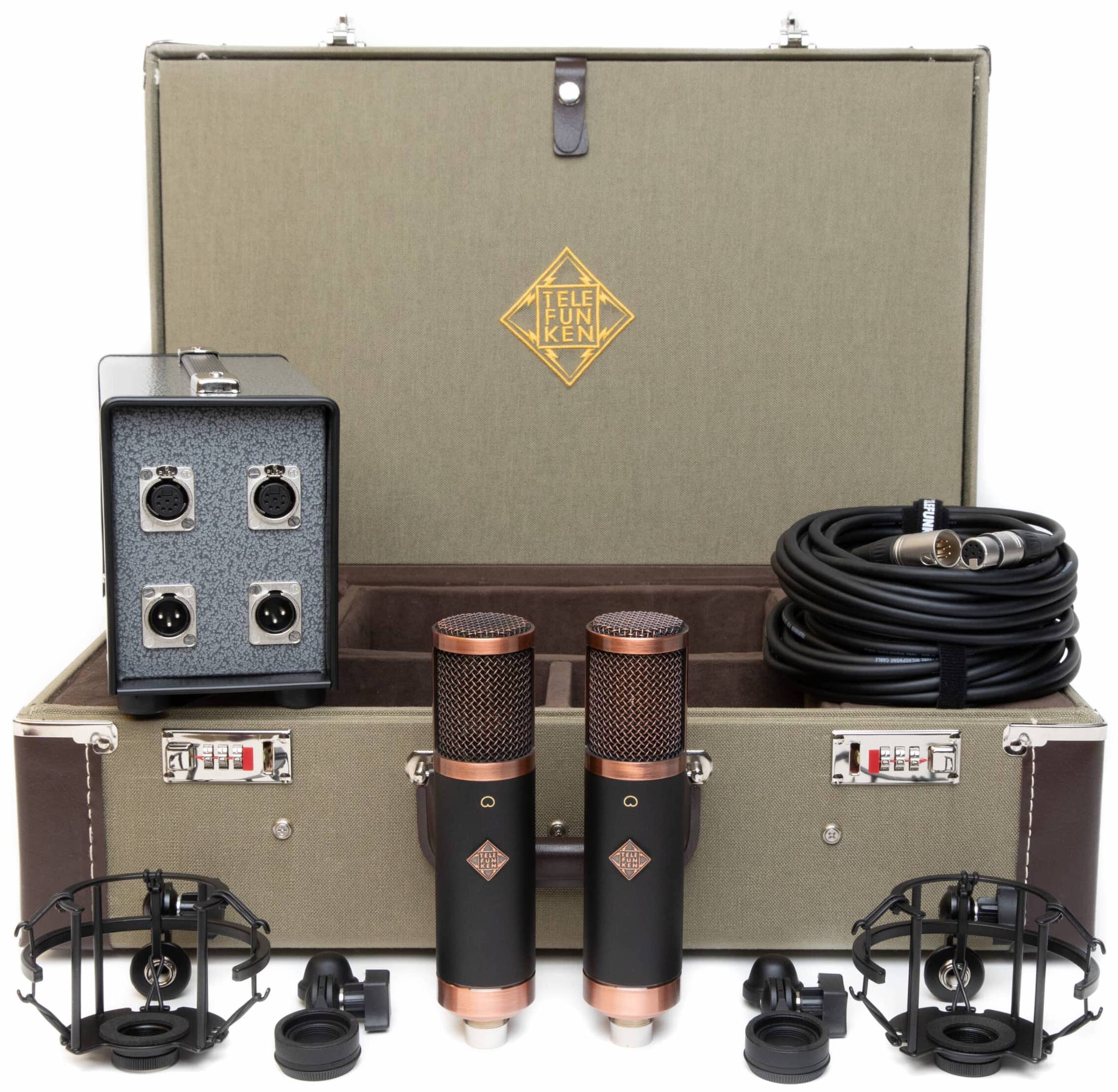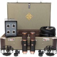 A frequency and gain matched pair of microphones with a dual power supply, cables, mounts and locking case.