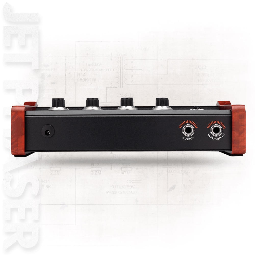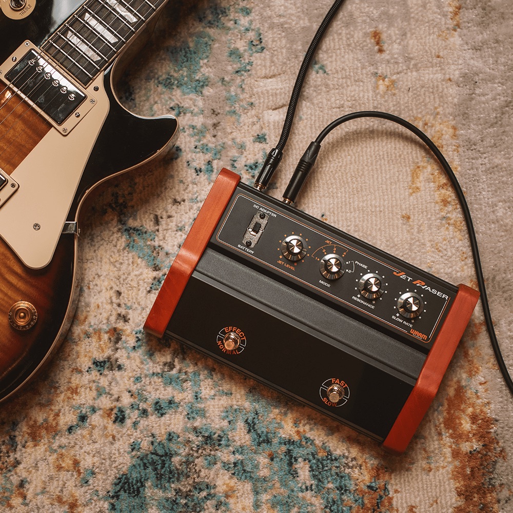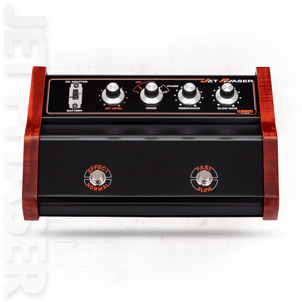 The Jet Phaser is a true reproduction of a popular six-mode phase & fuzz pedal made famous in the 1970s. A robust custom metal enclosure with retro wood paneling encases a vintage-correct circuit with premium components throughout. Jet Phaser accurately recreates the tones of the original pedal that were put on the map by legendary musicians including David Gilmour, Eddie Van Halen, The Isely Brothers, Herbie Hancock and many more.