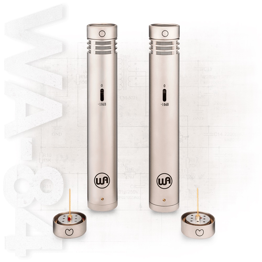 The WA-84 is a precise reproduction of the industry standard small-diaphragm condenser mic in a premium stereo package! Unlike modern transformerless recreations, vintage units are prized for the rich & detailed tone that reproduce smooth yet detailed high end. The premium package delivers the added choice of elite noise rejection of cardioid capsules, or the spacious ambient tones of omnidirectional capsules. The originals have been loved by artists like James Taylor, Fleetwood Mac, Paul Simon, Steve Gadd and many more.